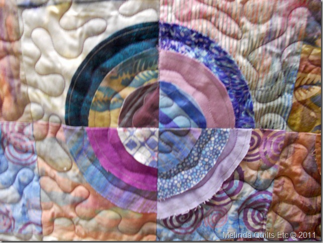 The last project was hexagon pot holders. They are a variation of the table topper, using Insul-Brite and only two fabric strips.