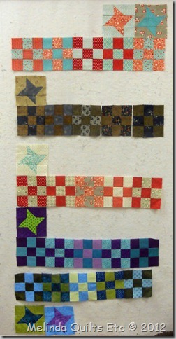 First the in report. I am designing and making yet another quilt for a class at the shop. It will be a sampler quilt of 12 blocks, each will be 12 inch finished. My plan is to have blocks beyond the beginner level that will allow the students to build on what they have learned in the beginner class. I posted a fuzzy photo of the fabrics at the last design wall post. It requires about 6 yards.